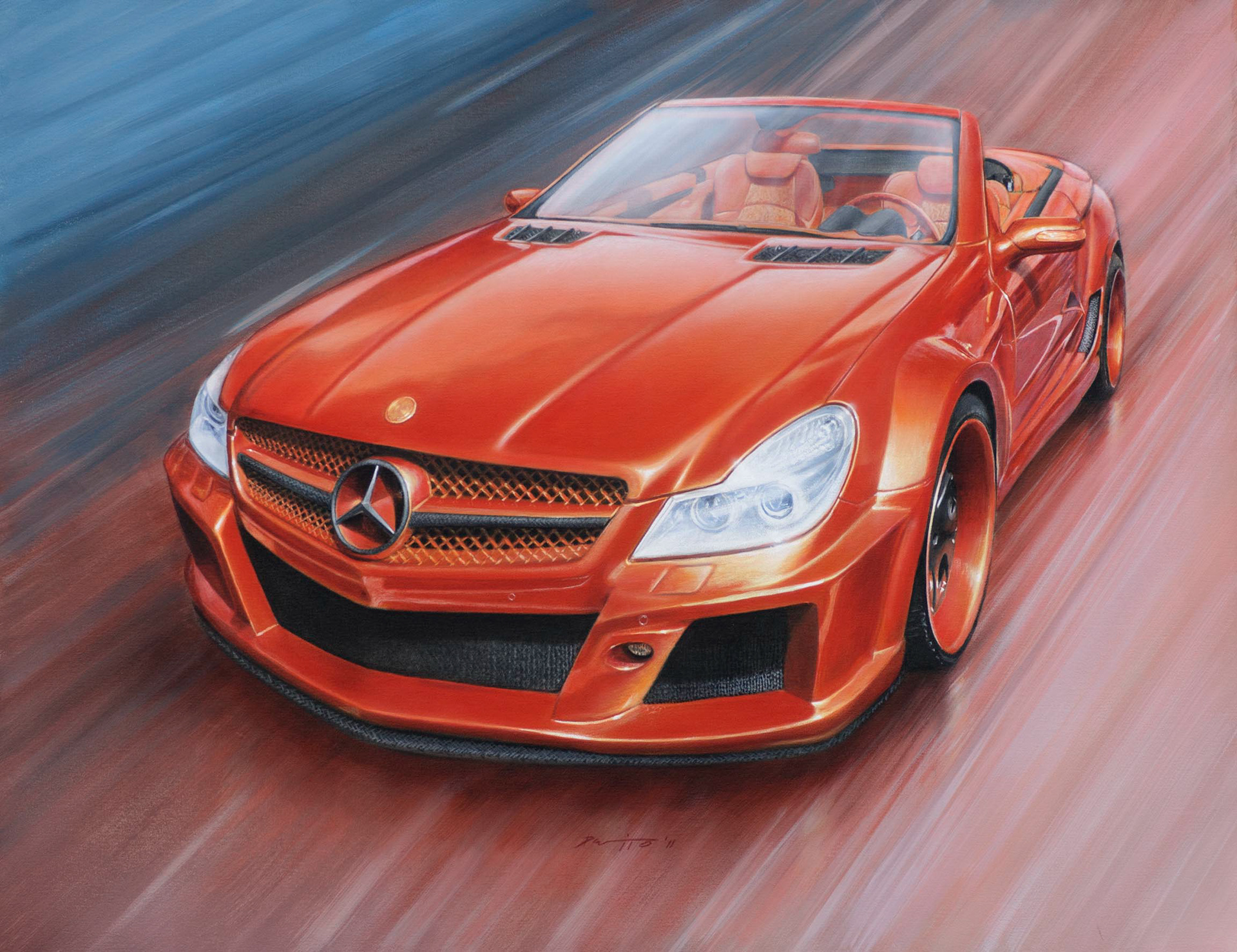 painting of a tuned mercedes